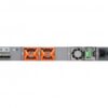 Dual hot-swappable AC or DC power supplies provide 1+1 redundancy, while five hot-swappable fan trays maintain high system availability.